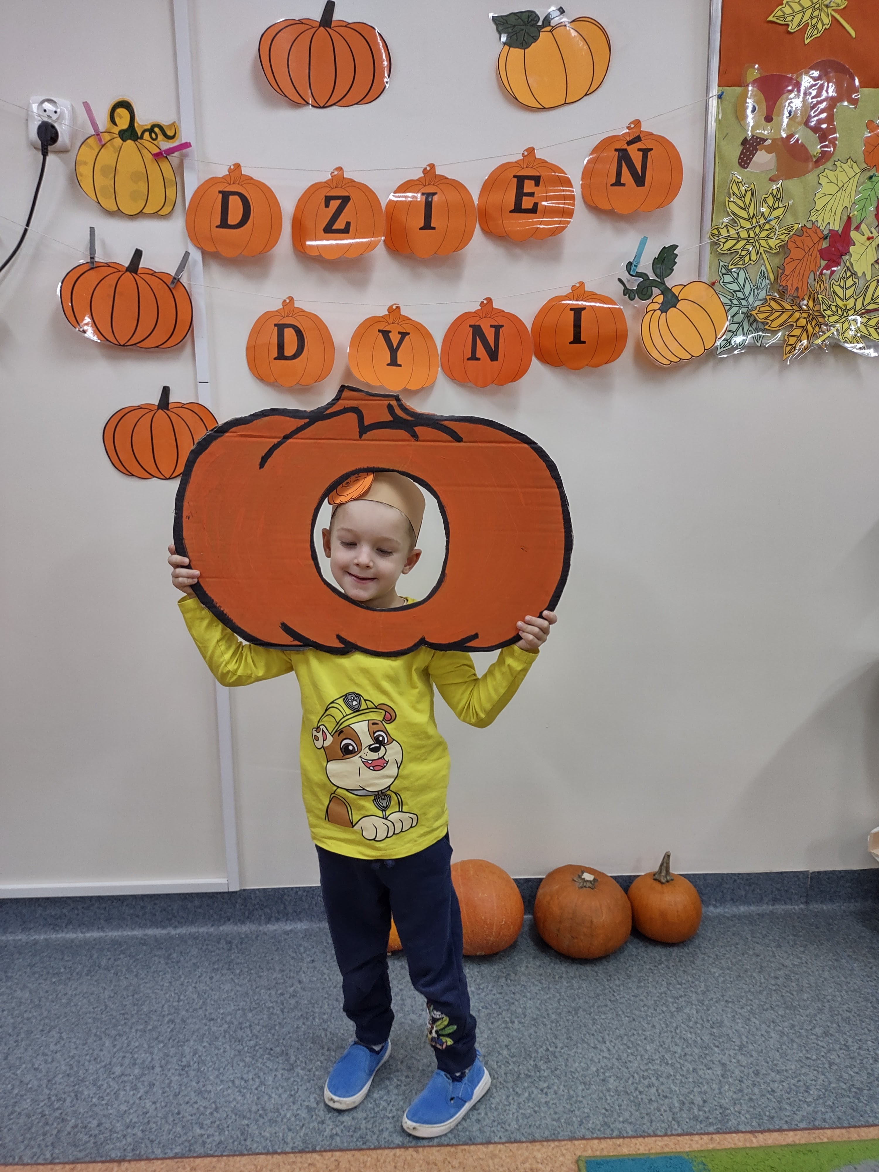 Jak co roku pod koniec października obchodziliśmy w przedszkolu Dzień Dyni. Dzieci tradycyjnie przyniosły pomarańczowe warzywa i ubrały się na ten sam kolor. Rano wykonaliśmy dyniowe opaski, które towarzyszyły nam przez cały dzień. Wspólnie poznaliśmy właściwości tego warzywa, odkryliśmy, co dynia ma w środku. Dynie towarzyszyły nam w wielu zabawach m.in. graliśmy w dyniowe kręgle oraz biegaliśmy slalomem omijając dyniowe tory przeszkód. Wykonaliśmy dyniowe prace plastyczne, wyklejając kontur dyni kawałkami papieru. Dzieci uczestniczyły w zajęciach logopedycznych, które przygotowała p. Aneta. Odbyła się również sesja fotograficzna z dyniami, a na koniec dzieci otrzymały dyplomy za wspólne świętowanie "Dnia Dyni". Na korytarzu mogliśmy podziwiać prace konkursowe „Dzieło dyniowe, niehaloweenowe”, które nasze przedszkolaki razem z rodzicami, chętnie przygotowali.